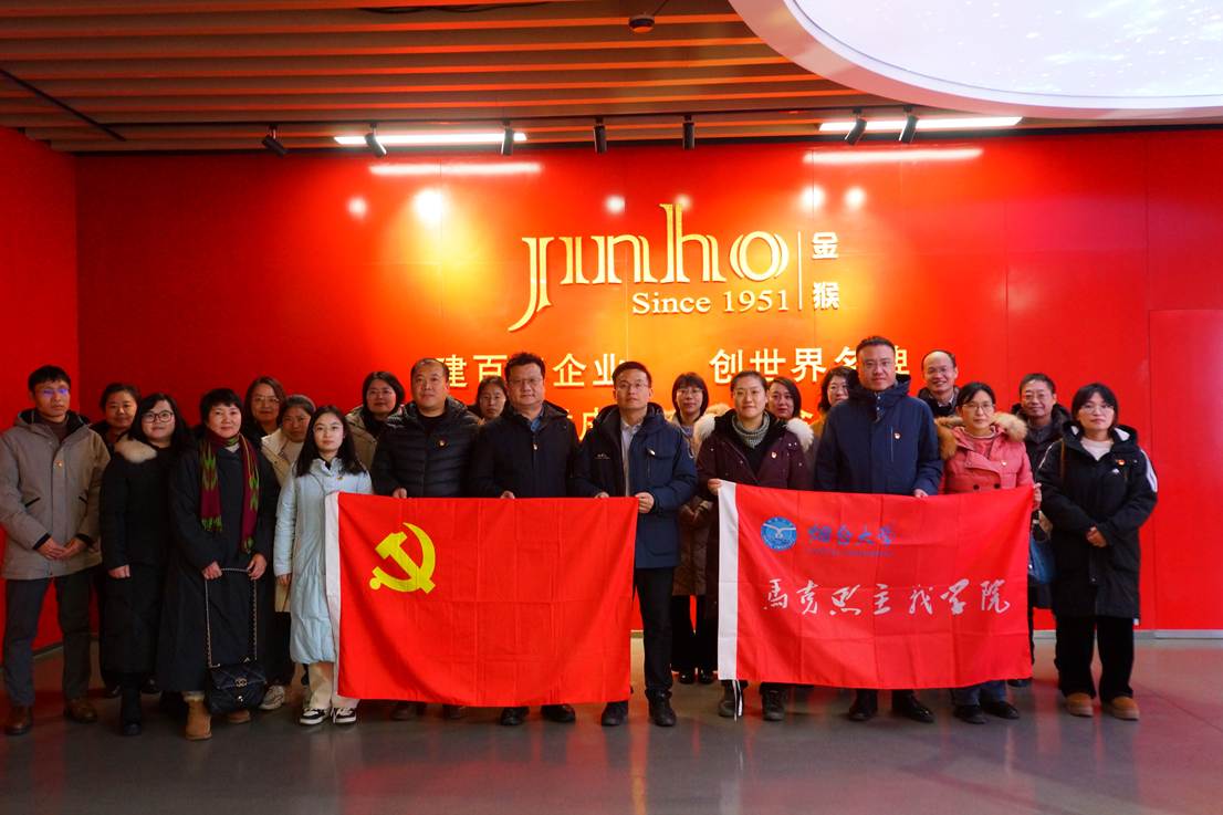 在胶东(威海)党性教育基地金猴展陈馆,在专业讲解员的带领下,大家深入生产车间,见证了从设计到成品的全过程,切身感受企业对品质的不懈追求和对工艺的精益求精。在金猴集团的历史文化展厅,一幅幅珍贵的照片、一件件精美的展品,引导大家深刻感悟工匠精神。在活动中,双方还就学院人才培养和企业用人需求进行了深入交流,希望进一步深化交流合作。