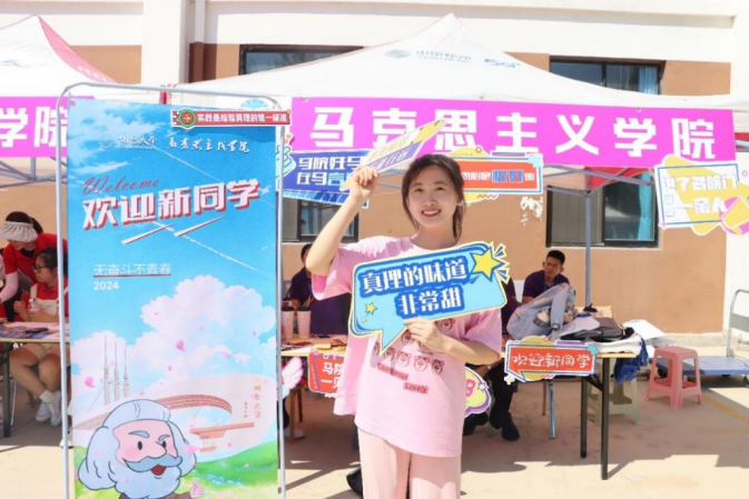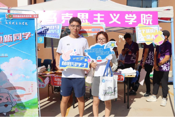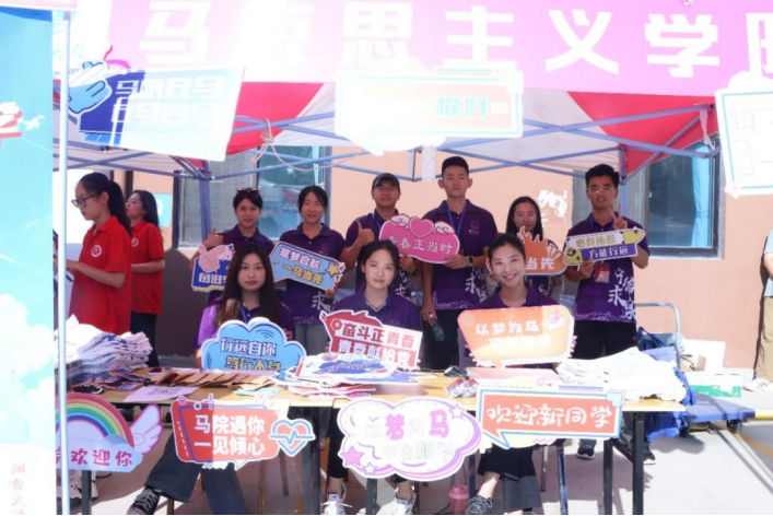学院还为新生设计了具有马院特色的手卡,在迎新展台前,为同学们留下入学的第一张照片。在迎新现场,师兄师姐们对新生表示热切的欢迎,耐心地解答新生提出的问题,让新生更快地融入到亚洲色吧