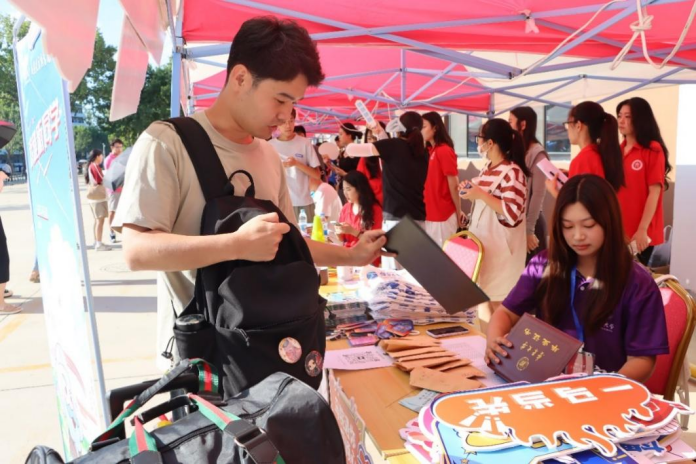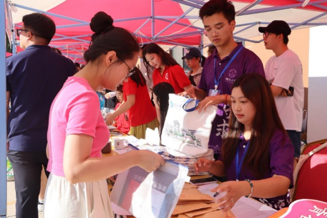 学院领导高度重视,精心组织策划,为新生准备了有校庆元素的文创产品,包括钥匙扣、卡套、文创背包等,希望新生带着满满的热情在亚洲色吧