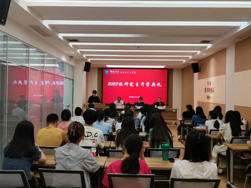 在校生代表2021级研究生杨佳丽向新生分享研究生生活的经验与体会,并鼓励师弟师妹立鸿鹄志、求真学问、行长远路,做有理想的奋进者、有本领的接班人、知行合一的实干家。2023级研究生新生代表孙钰倡议同学们谨记“守信求实好学力行”的校训,传承“海纳百川 敢为人先”的烟大精神;努力成为知识的发现者、真理的探索者、理想的奋斗者,不断思考不断质疑不断超越,成为一名合格的研究生。