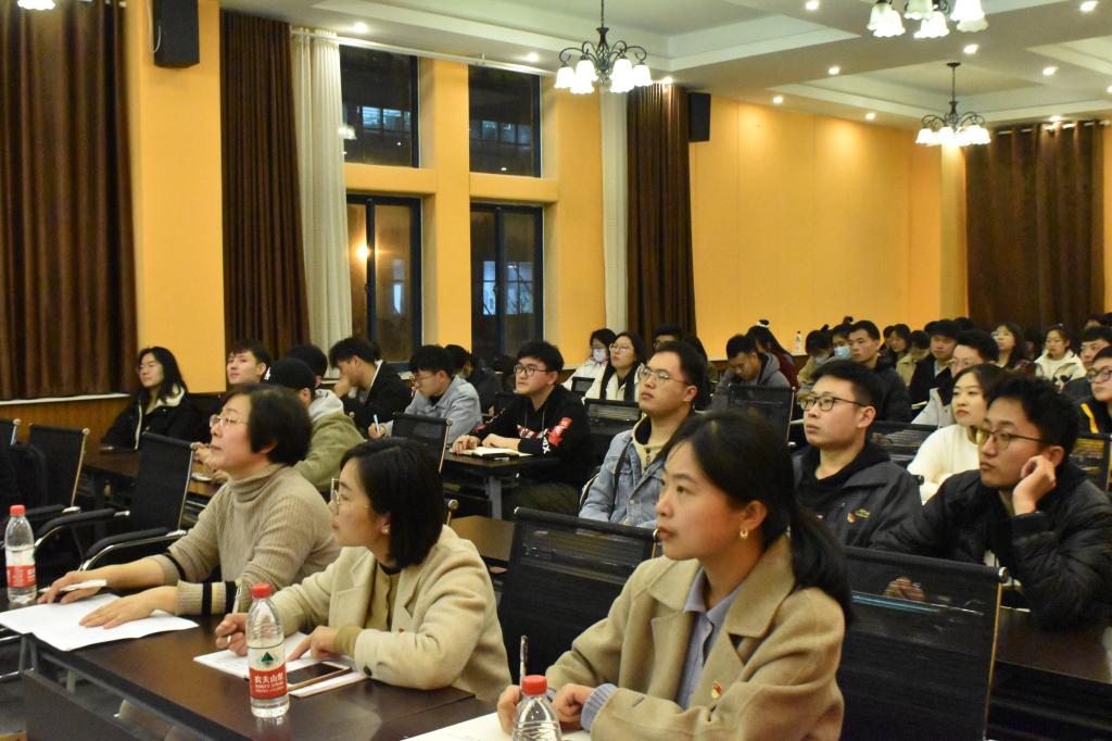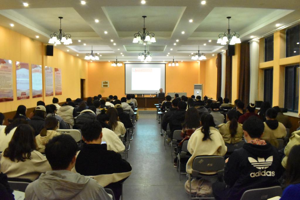 党总支副书记杜德省主讲,两个学院的部分教师党员及全体学生党员、发展对象、积极分子参加学习。