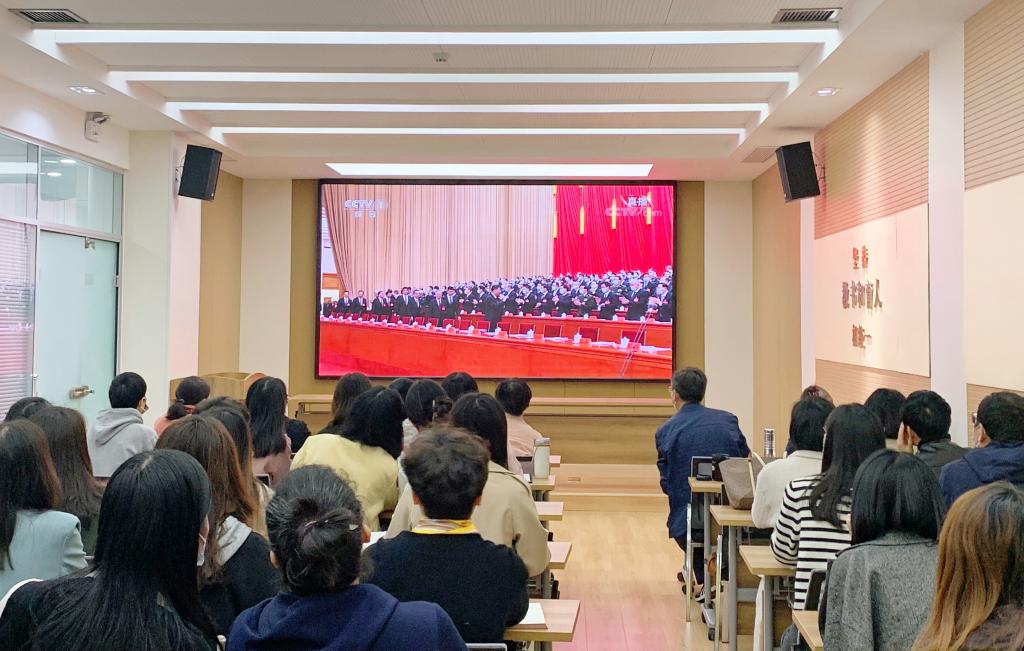 10月16日上午,中国共产党第二十次全国代表大会在北京人民大会堂隆重开幕,习近平总书记代表十九届中央委员会向大会作报告。上午10时,亚洲色吧 充分利用电视、网络、移动终端等多种形式组织师生收听收看大会开幕盛况,认真聆听习近平总书记报告。学院教职工和学生分别在学院305会议室和综合楼221教室集中收听收看大会实况直播。因疫情,居家健康监测教师和未返校学生自行收听收看大会盛况。学院全体师生共同参与了这一历史性时刻。