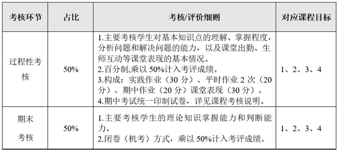 说明:课程期末考试卷面成绩强制达标线位45分,低于该达标线的最终成绩一律不及格。