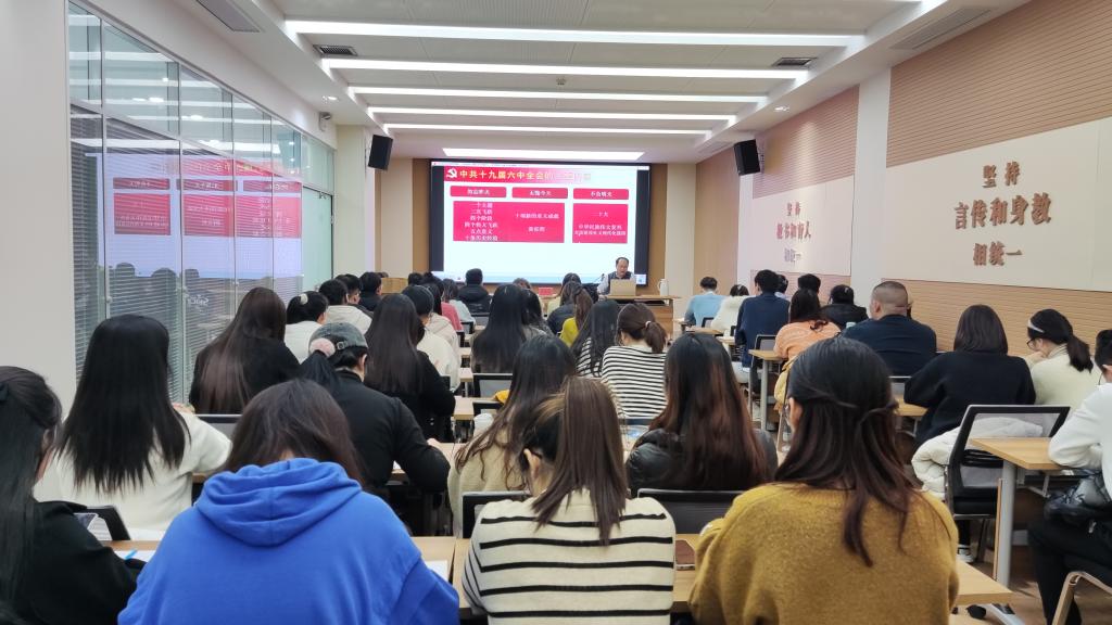 在305会议室开展十九届六中全会精神学习专题党课。此次党课由学院党总支副书记杜德省主讲,学院全体研究生参加。