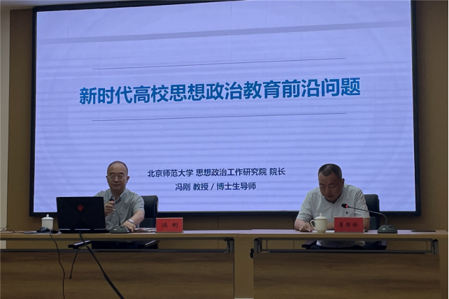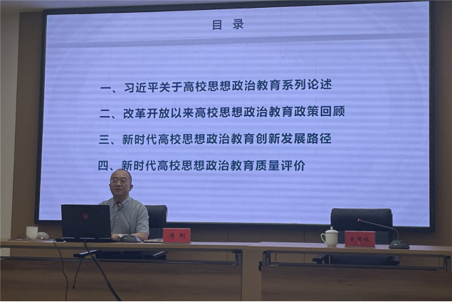 冯刚教授从“习近平关于高校思想政治教育系列论述”“改革开放以来高校思想政治教育政策回顾”“新时代高校思想政治教育创新发展路径”“新时代高校思想政治教育质量评价”等方面入手,结合多年来教学、科研、工作积累,抽丝剥茧地为与会教师剖析了当前高校思想政治教育研究的主要问题与热点问题、分析方法与研究路径、参考资料与技术手段,并与大家深入沟通交流。