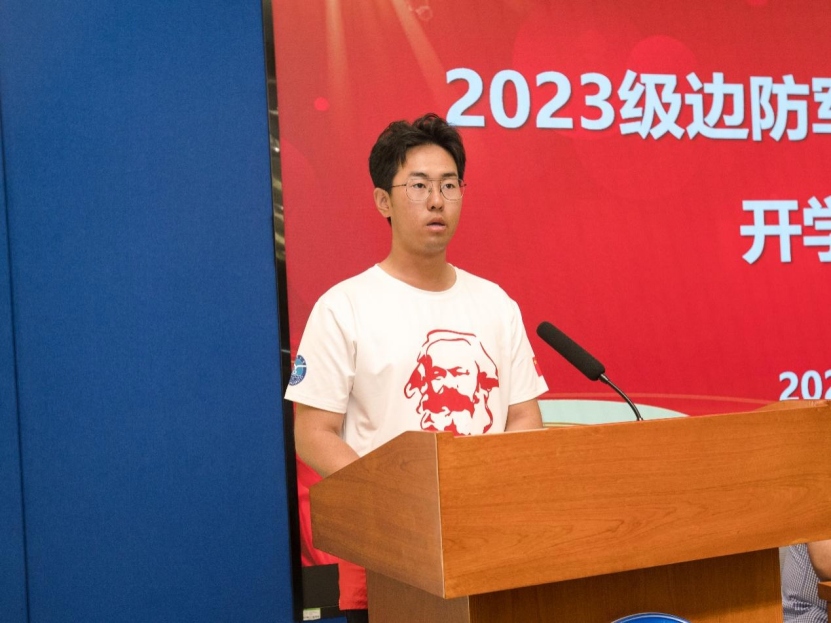 2022级预科班学生代表刘坤向新生分享大学生活的经验与体会,并鼓励学弟学妹葆本色、勇担当,肯吃苦、善学习,懂感恩、知奋进,展示出部队子弟们的风采,不负于父母老师的付出和国家的优待,为中华民族伟大复兴努力奋斗。