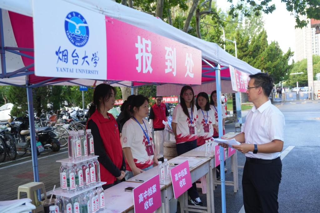 党总支书记李祎、院长王毅、党总支副书记陈雷来到预科班新生报到现场,欢迎来校报到的新生,慰问参与迎新工作的师生,查看新生报到接待点设置情况。“欢迎边防军人子女预科班新同学,希望你们传承军人坚毅品格与奋斗底色,珍惜宝贵的预科时光,以理想为帆、以实干为桨,在烟大书写属于自己的青春答卷!”学院领导与前来报到的预科班新生和家长亲切交流。