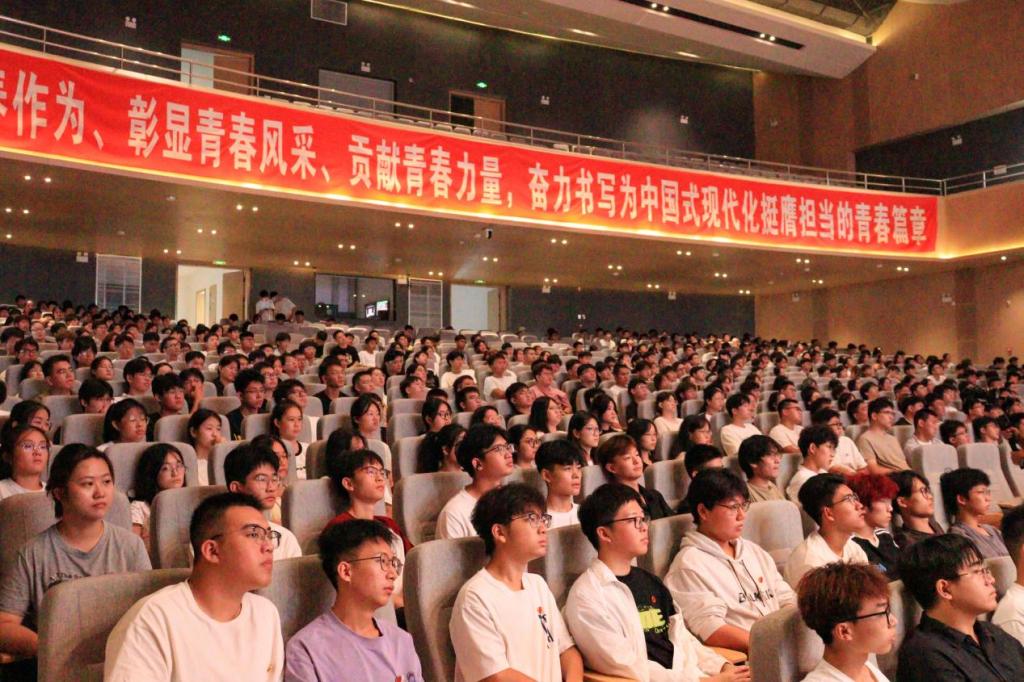 刘会清教授以《追光家国路,燃梦正青春》为题,引导广大新生系好进入大学的“第一粒扣子”,努力在“追光”中明确成长坐标,在“燃梦”中坚定报国志向。