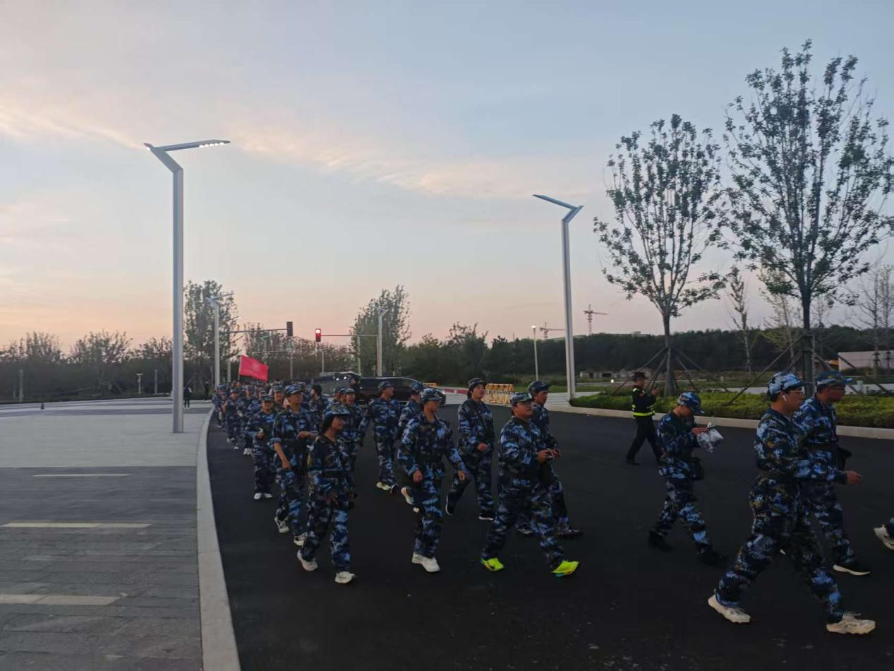 夜色中的海湾静谧深邃,新生们身着统一服装,迎着微凉海风高唱校歌,迈着坚定步伐向终点进发。思政课教师们主动穿插在队伍中,形成“师生同行”的暖心阵容:有的俯身搀扶体力不支的同学,递上温水补充能量;有的与学生并肩前行,从拉练感悟聊到人生规划。